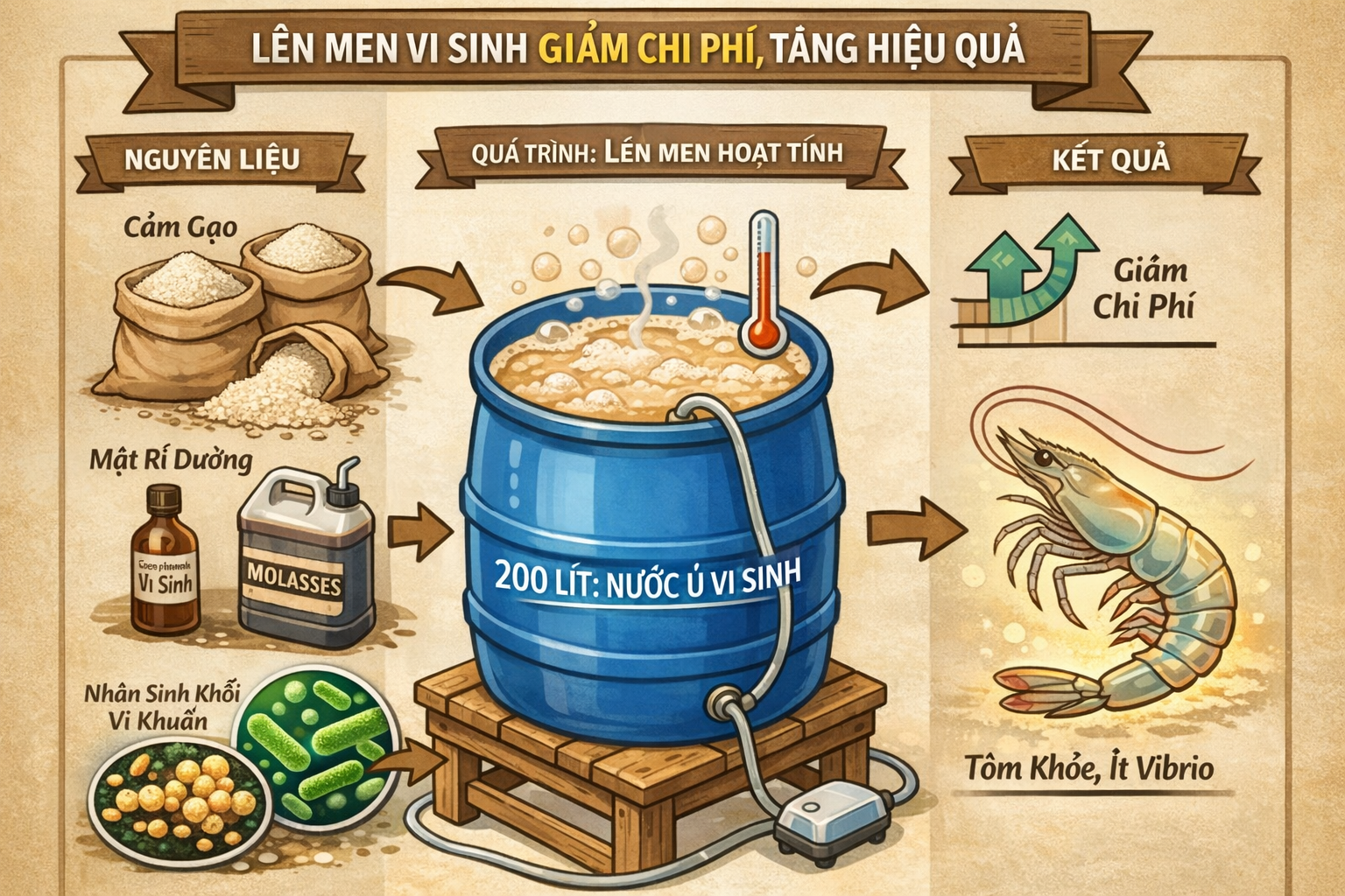 Men vi sinh đóng vai trò rất quan trọng trong nuôi tôm theo hướng sinh học và bền vững. Tuy nhiên, nếu sử dụng không đúng cách hoặc lạm dụng quá mức, hệ vi sinh trong ao nuôi có thể bị mất cân bằng và làm giảm hiệu quả của chế phẩm. Vì vậy, người nuôi cần sử dụng men vi sinh đúng liều lượng, đúng thời điểm và kết hợp quản lý môi trường ao nuôi hợp lý để đạt hiệu quả tốt nhất trong suốt vụ nuôi.
